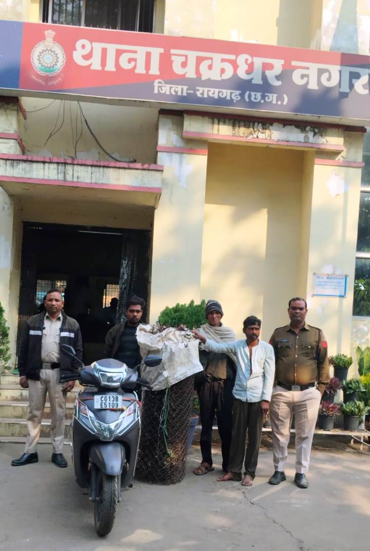 *रायगढ़, 20 जनवरी* । थाना चक्रधरनगर क्षेत्र अंतर्गत इंदिराविहार में वन विभाग द्वारा संरक्षित क्षेत्र की सुरक्षा के लिए लगाए गए फेंसिंग तार की चोरी करने वाले तीन आरोपियों को पुलिस ने गिरफ्तार कर न्यायालय में पेश करते हुए रिमांड पर भेज दिया है। आरोपियों के कब्जे से चोरी में प्रयुक्त होंडा एक्टिवा स्कूटी, लगभग 25 मीटर फेंसिंग तार तथा तार काटने में इस्तेमाल किए गए दो लोहे के प्लास जब्त किए गए हैं।