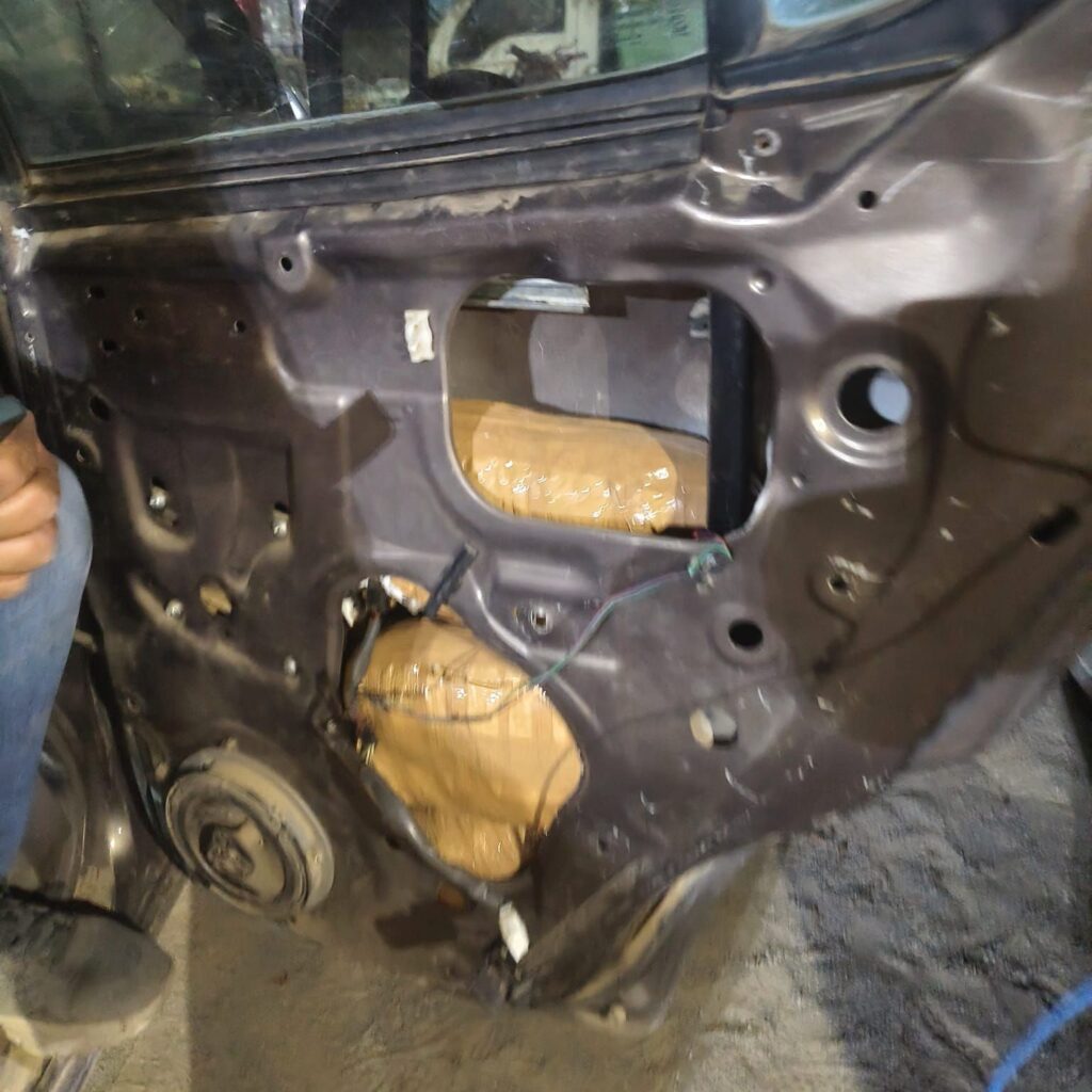 वाहन में सवार आरोपियों ने अपना नाम *श्रवण कुमार निषाद और महेन्द्र प्रसाद चौहान* बताया। प्रारंभिक पूछताछ में आरोपियों ने गांजा तस्करी से इंकार किया, लेकिन पुलिस को मिली सटीक सूचना के आधार पर वाहन की बारीकी से जांच की गई, जिसमें कार के दरवाजों और बैक लाइट के अंदर बनाए गए गुप्त चेंबर से गांजा बरामद हुआ। आरोपी श्रवण कुमार निषाद के कब्जे से करीब 19.033 किलोग्राम गांजा तथा आरोपी महेन्द्र प्रसाद चौहान के कब्जे से करीब 10.082 किलोग्राम गांजा बरामद किया गया। इसके अलावा गांजा परिवहन में प्रयुक्त मारुति सुजुकी रिट्ज कार और दोनों आरोपियों के मोबाइल फोन भी जब्त किए गए।