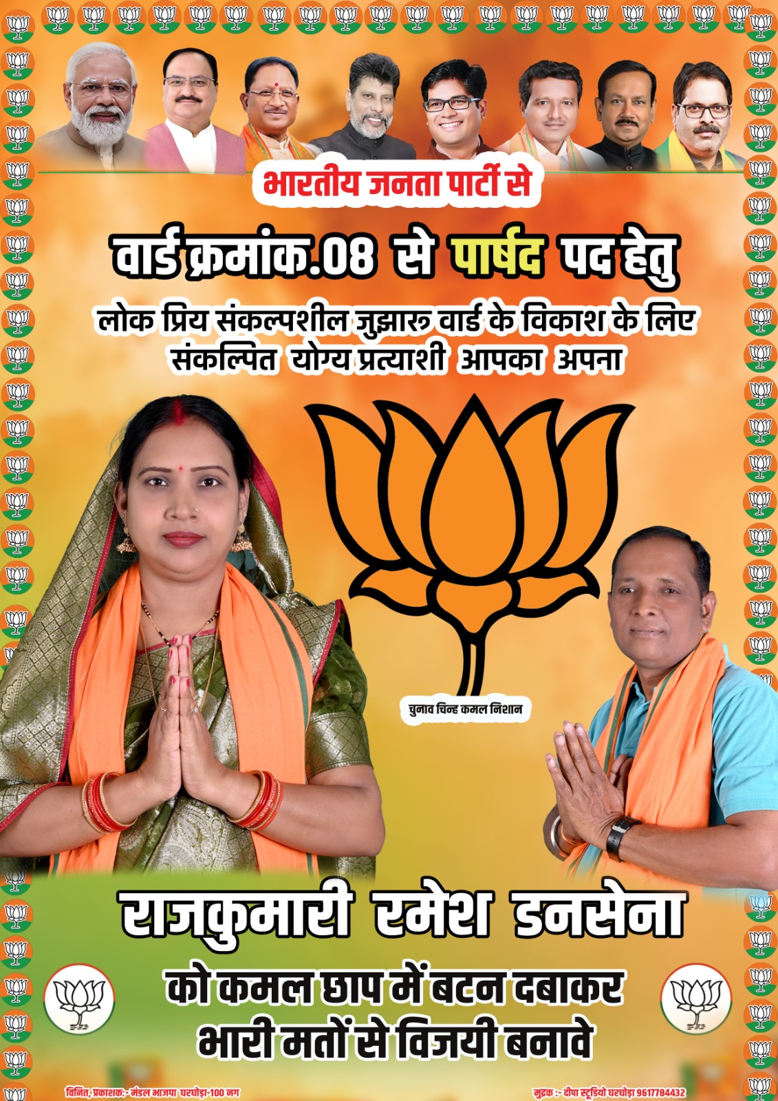 भारतीय जनता पार्टी घरघोडा वार्ड न 8 से पार्षद प्रत्याशी: राजकुमारी रमेश डनसेना