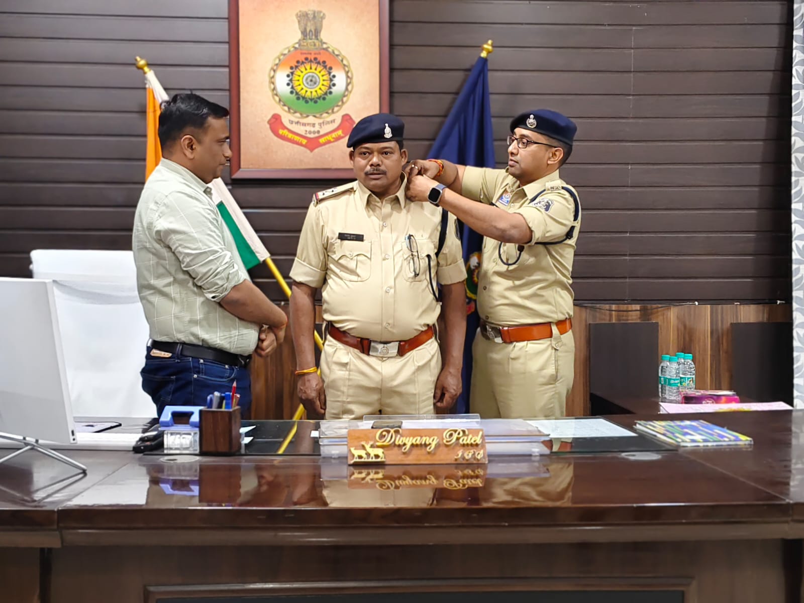 *सहायक उप निरीक्षक विजय एक्का बने उप निरीक्षक, पुलिस अधीक्षक ने लगाया स्टार *