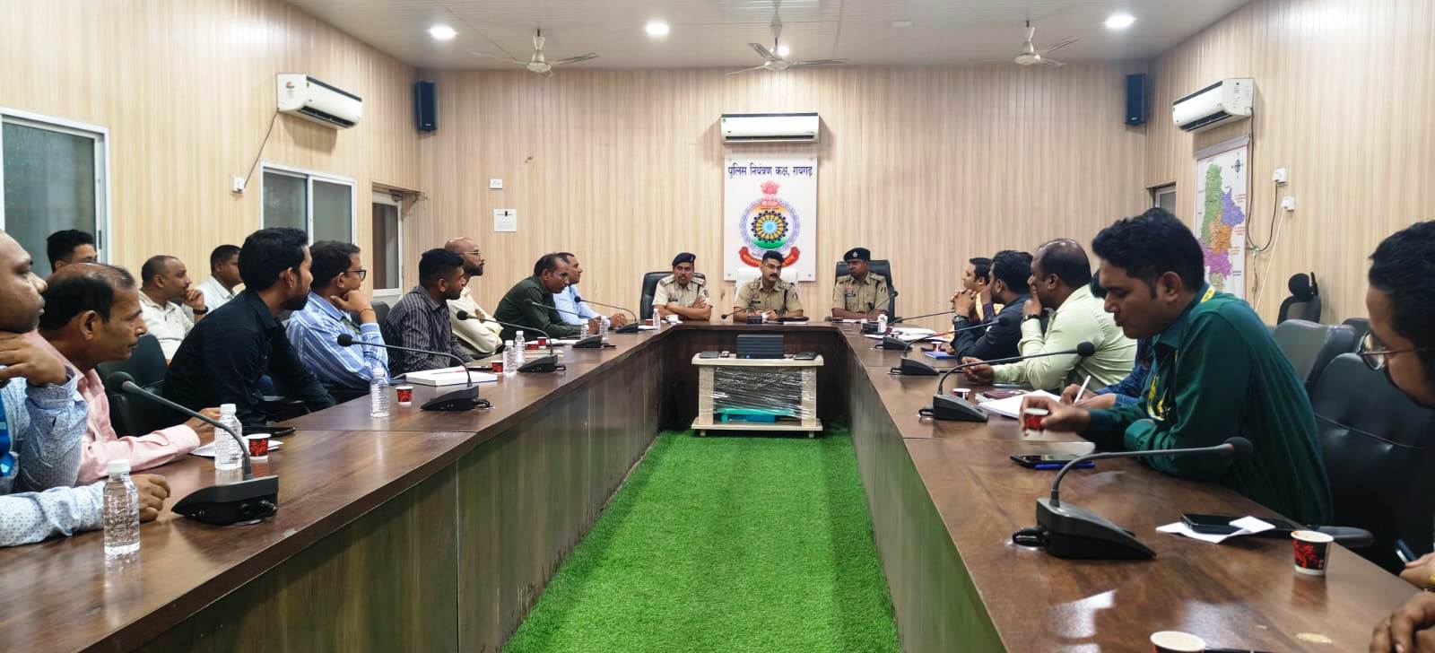 *रायगढ़, 15 अक्टूबर* । पुलिस अधीक्षक श्री दिव्यांग कुमार पटेल के दिशा-निर्देशन पर धनतेरस और दीपावली त्यौहार को देखते हुए शहर में सुरक्षा व्यवस्था को लेकर पुलिस ने कमर कस ली है। इसी क्रम में आज 15 अक्टूबर 2025 को पुलिस कंट्रोल रूम रायगढ़ में सराफा व्यापारियों और बैंक अधिकारियों के साथ दो महत्वपूर्ण बैठकें आयोजित की गईं।
